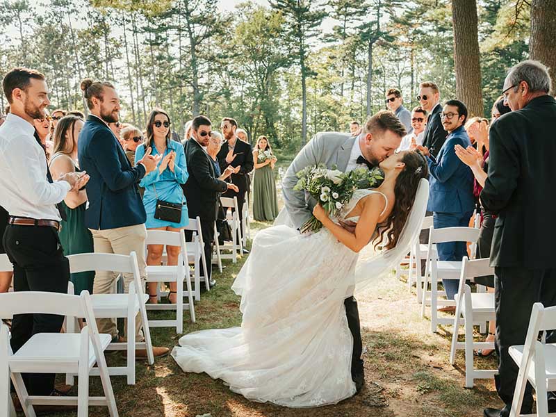Les mariés marchant lors de la cérémonie au Golf Royal Bromont